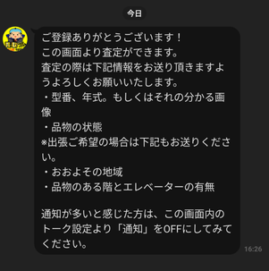 買取コムがメッセージを送信