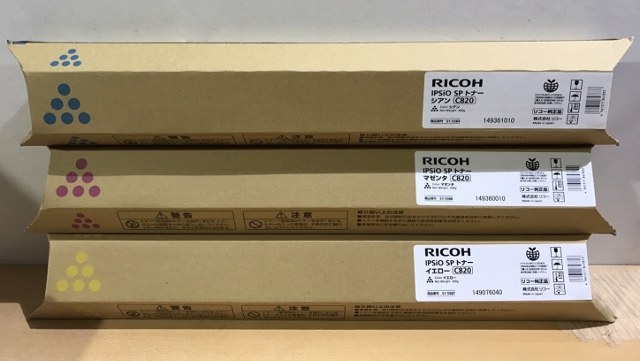 事務機器買取価格情報 大阪市浪速区 店頭でのお買取 RICOH 新品 純正トナー SPトナー C820 3色 3本セット IPSiO
