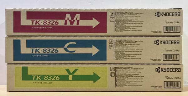 事務機器買取価格情報 大阪市浪速区 店頭でのお買取 新品 【純正】 KYOCERA トナーキットTK-8326 マゼンタ/シアン/イエロー 3色セット 2551ci対応