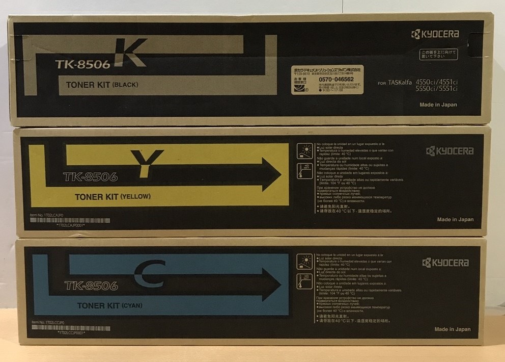 事務機器買取価格情報 大阪府東大阪市 店頭でのお買取 新品 純正 KYOSERA トナーキット TK-8506 3色SET K/Y/C 4550ci等対応